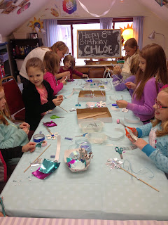 I hosted a first grader's birthday party at my studio, No Corner Suns.  It is a very small classroom up above an old travel agency.  On my website I say our maximum is 12 kids/party.  Well, we've been able to stretch that to 15...and this weekend I stretched it to 17.  Yes.  Seventeen first graders up in my little attic classroom- and it was off the hook.