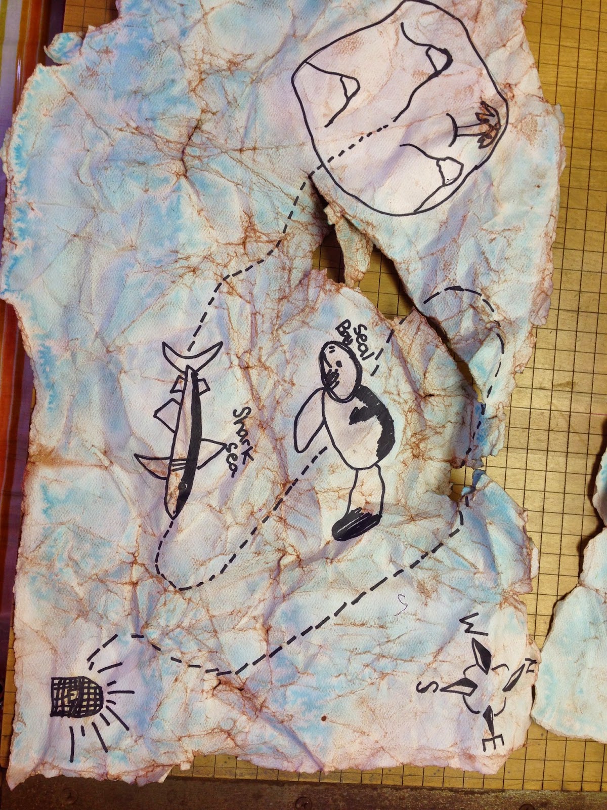 For our project, we made Treasure Maps!  This involved a few visuals and I brought a few books for the kids to look at.  My fun little group was 1st - 6th graders, and they all had fun!