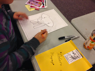 Then we traced our pictures with Sharpie, and colored with crayons!