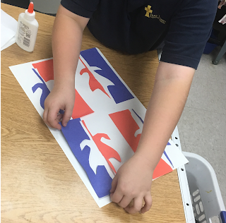 We folded and traced onto the colored paper. The trickiest part is the cutting, like I showed in the video, it's easy to forget what you are doing and just start cutting. But don't. Make sure students cut on the fold first! Then cut our their shapes. After that it is pretty easy peasy.