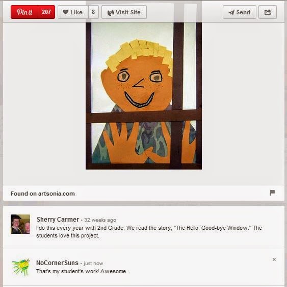 That's my student's work! I thought it was pretty cool that some teacher was searching for projects on Artsonia and pinned one of mine, and I happened to come across it. It was a neat "small world" moment. The fact that it had 207 repins was also totally cool.