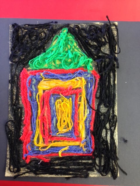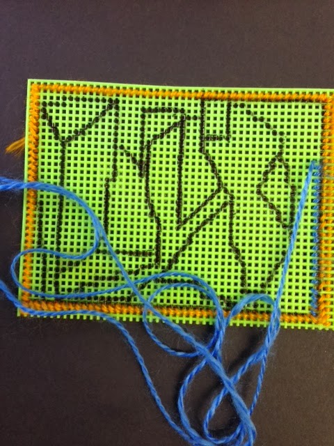 The second problem was the Plastic Canvas Lacing. I never have done this before in my life. I chose it because I had it. Also, I have a thing for terribly awesome stuff and I was totally hoping some kid would make a Tweety-bird Kleenex box. I watched a few YouTube videos and messed around with it and figured it was pretty easy once you get the hang of it. So, I thought my kids could handle it. I had eight fifth graders choose this medium and not one kid finished or got far at all. Fifth graders could not wrap their head around this concept. It seems so mundane, and after one row I was like "I got this!" But, that never happened for any of the 10 & 11 year olds. The last few weeks of the quarter most switched to a card loom weaving, with one kid insisting that he would finish. He did not.