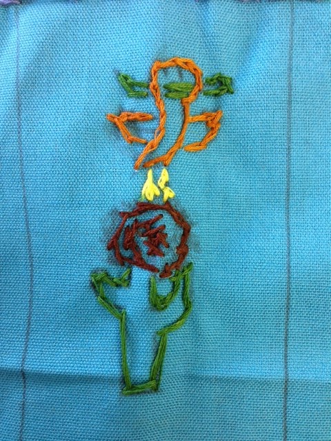 Choosing the projects was not as hard as I had anticipated. I had a few flip-floppers the first day. I told them sternly that they would not be able to change their projects again! Next, I created a new seating chart based on what each student was making. This made it easy for me to give more private instructions. I had the supplies on my work table divided up by each project. Huichol kids only had to get stuff from the Huichol box, Embroidery kids, the Embroidery box... etc. We spent two class hours solely working on our Textiles project so that I knew everyone had a good start. Then, I introduced a new project that we would be doing all together.